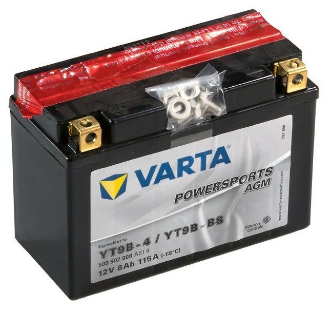 Аккумулятор для мотоцикла и скутера VARTA POWERSPORTS AGM 8 А/ч 115 А прям. пол. с/зар. с эл. YT9B-4, YT9B-BS (149х70х105) 509902