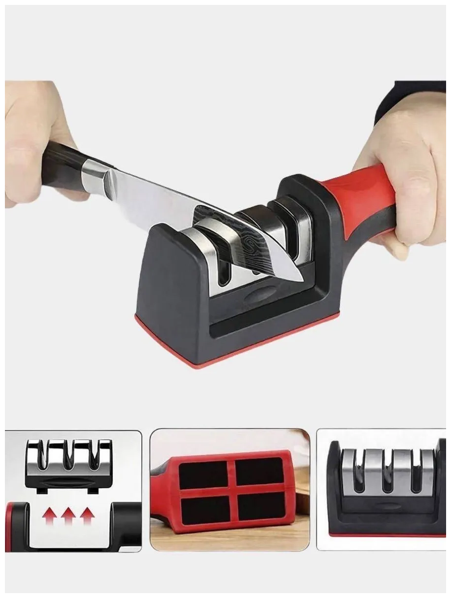 Точилка для ножей и ножниц / ножеточка / трёхзонная настольная ножеточка / точило Sharpener