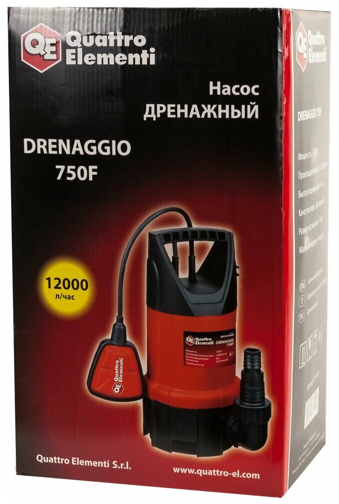 Цена для г. Курчатов. Дренажный погружной насос Quattro Elementi Drenaggio 750 F поможет быстро осушить затопленные подвальные помещения, колодцы, ямы. Его мощности 750 Вт хватает для того, чтобы выкачивать не менее 200 л/мин. Насос способен работать на максимальной глубине в 2 м. При этом вес прибора нельзя назвать большим, так как он приравнивается всего к 5,5 кг. Удобный погружной насос быстро подготавливается к эксплуатации и отличается долговечностью благодаря качественным деталям. Магазины в городе Курчатов смотрите ниже