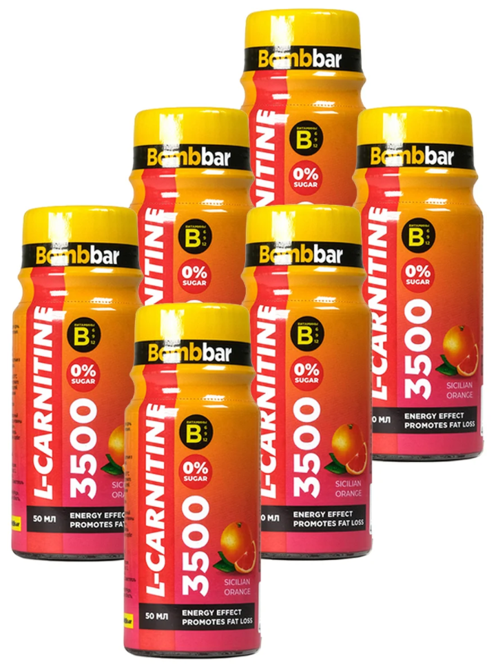 Bombbar Жидкий L-Карнитин L-Carnitine, 12х50 мл (3500 мг) Апельсин / Жиросжигатель для похудения женщин и мужчин