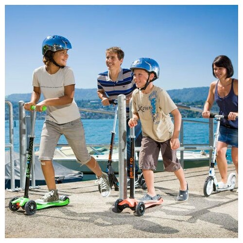 Цена для г. Курчатов. Самокат Micro Maxi T — легкая, мобильная и одна из самых безопасных моделей от всемирно известного швейцарского бренда Micro Mobility Systems. Благодаря литым колесам и подшипникам ABEC 5, прогулка на самокате быстра и не требует усилий. Характеристики: Высокопрочная рама из алюминия и пластика Съемный руль, регулируется под рост ребенка Литые колеса из полиуруетана Сдвоенное заднее колесо Подшипники ABEC 5 Жесткость — 87А Наступающий задний тормоз (step-on brake). Магазины в городе Курчатов смотрите ниже
