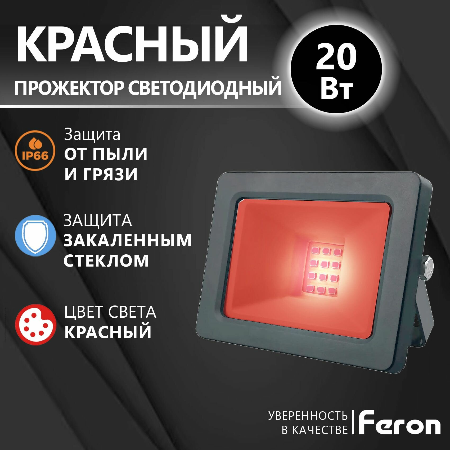 Прожектор светодиодный уличный влагозащищенный, многоматричный FERON LL-902 IP65 20Вт красный (150Вт, 100Вт, 70Вт, 50Вт, 30Вт, 10Вт) черный корпус