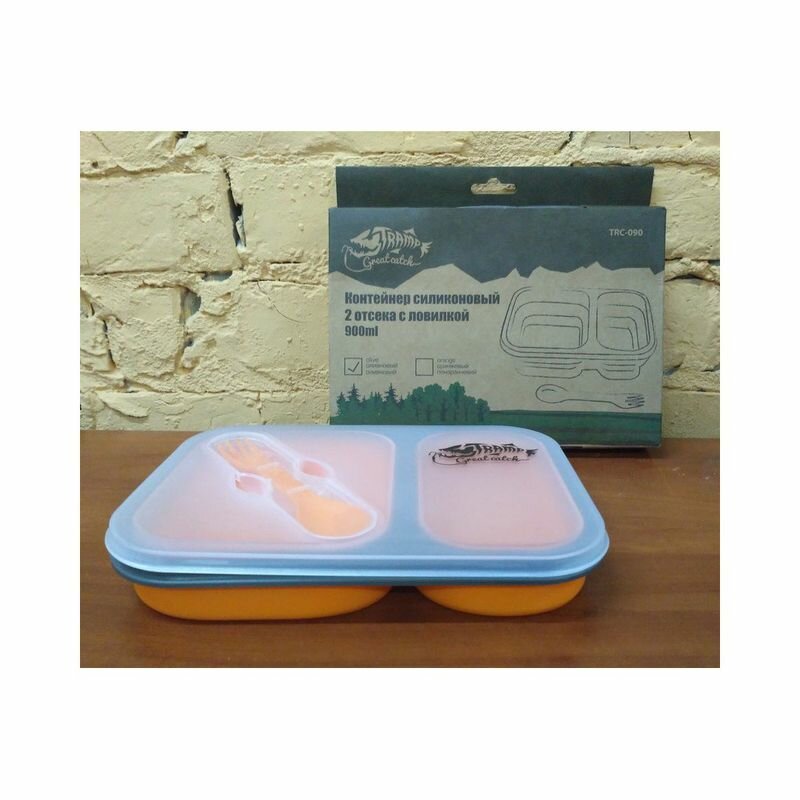 Контейнер Tramp 900мл, силикон, ловилка, 2 отсека (оранж) TRC-090