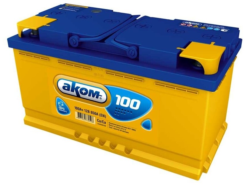Аккумулятор автомобильный АКОМ (Akom) 100 А/ч 850 А обр. пол. Евро авто (355x177x190)