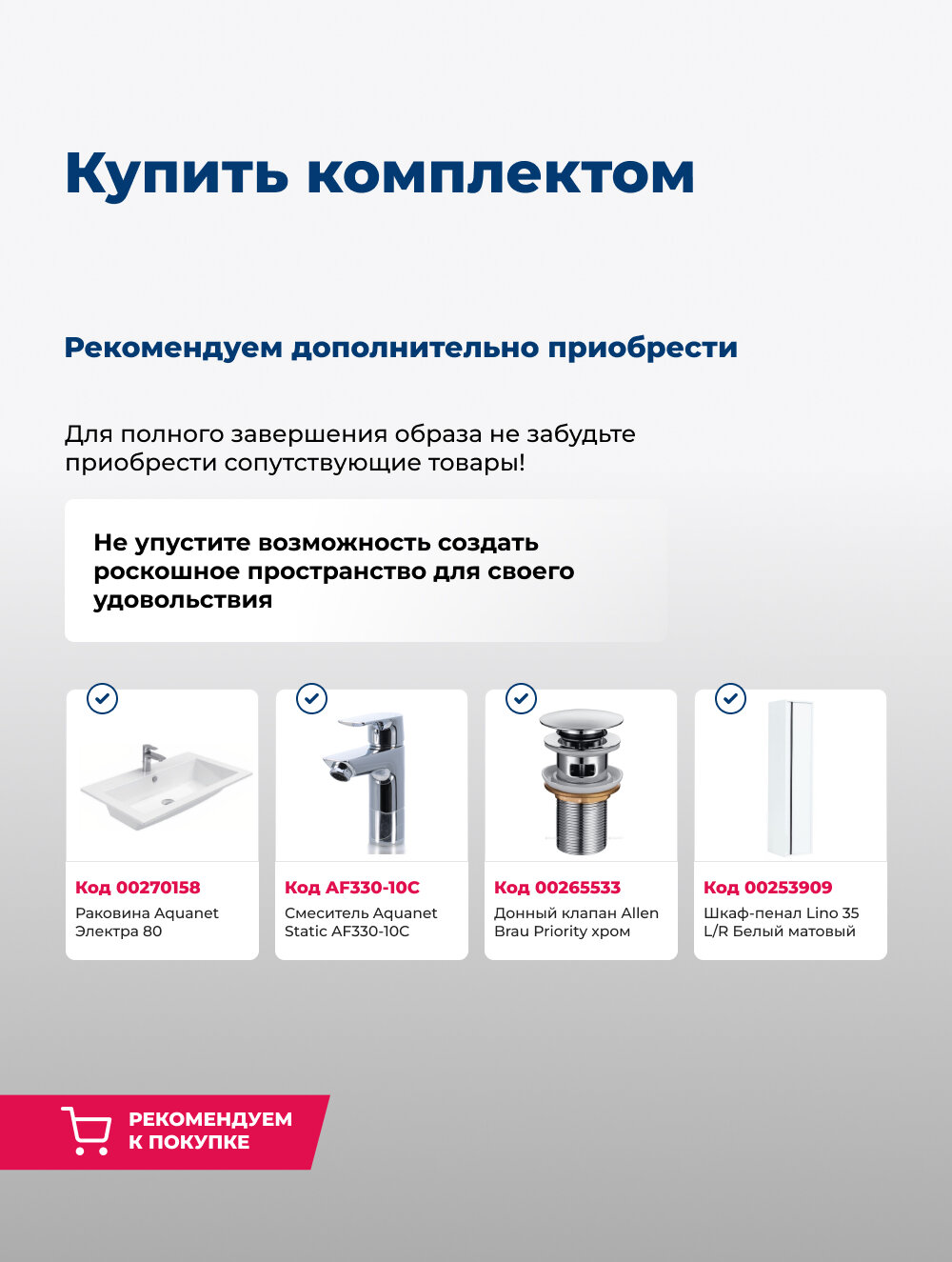 Тумба под раковину AQUANET Lino 80 Белый матовый Размеры: Высота 530мм Глубина 495мм Ширина 790мм