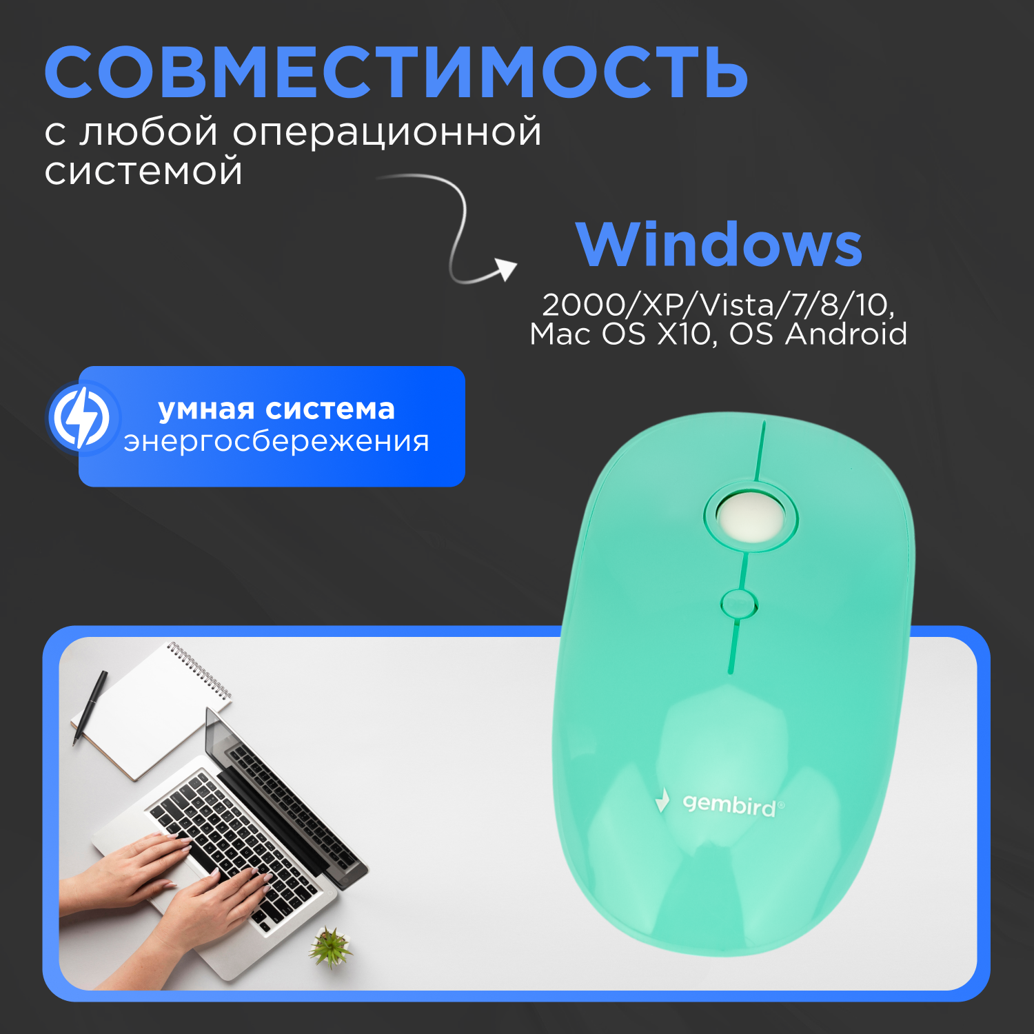 Gembird Мышь беспроводная Gembird MUSW-395 , 2.4ГГц, 2 кнопки + колесо кнопка,1000DPI мятный глянец мышки в Курчатов