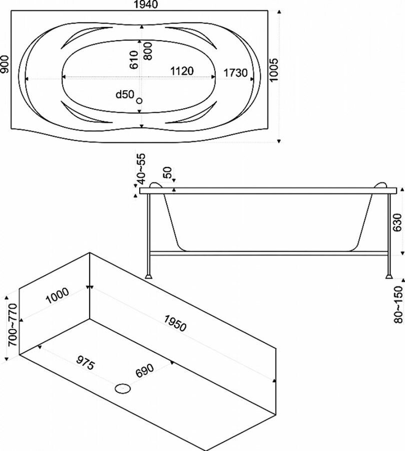 - ванна / ножки / подлокотники