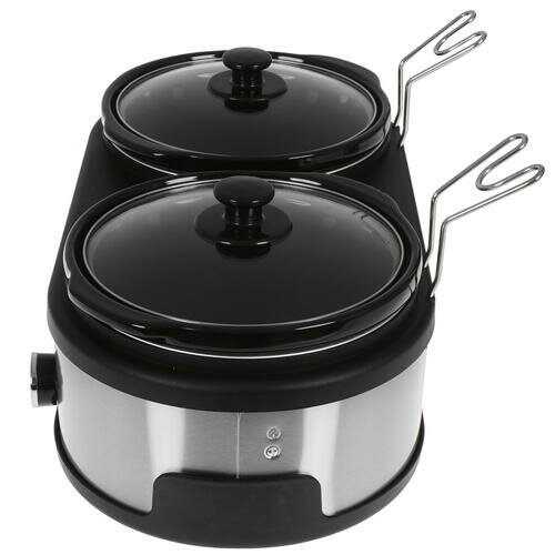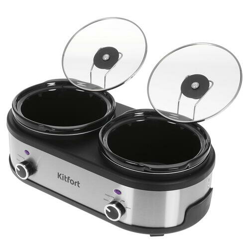 Медленноварка КТ-219, 280 Вт, 2 л + 2 л, 3 режима, серебристая