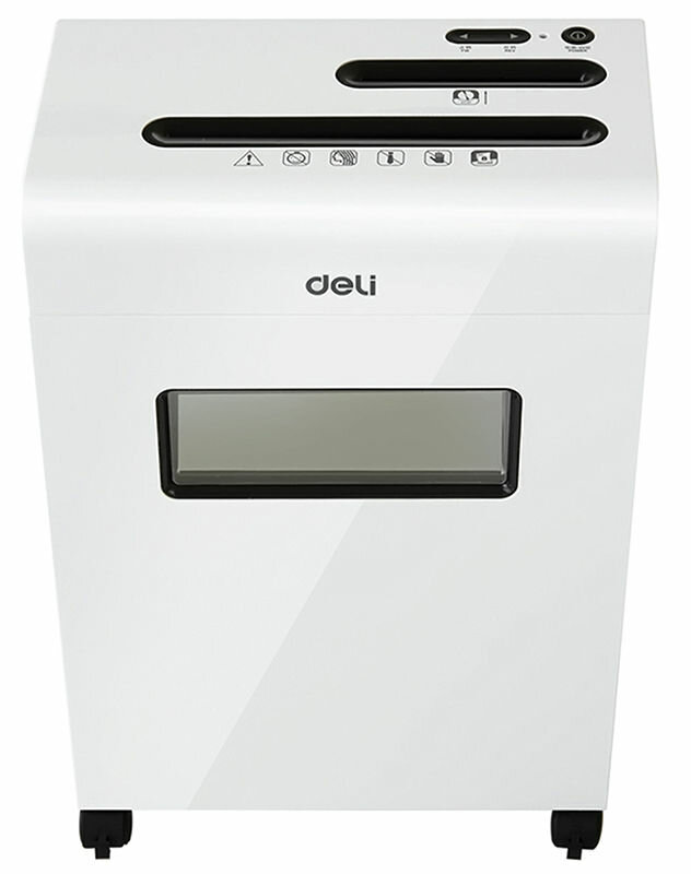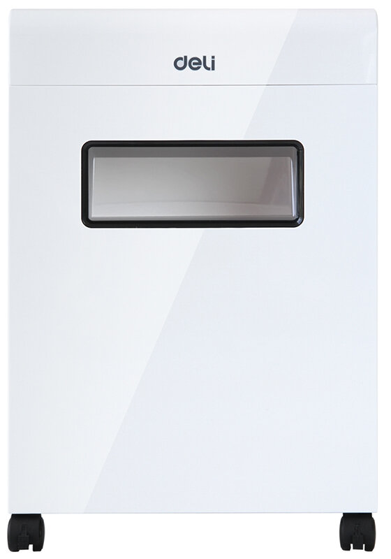 Уничтожитель документов (Шредер) Deli белый (секр.P-4) фрагменты 8лист. 16лтр. скрепки скобы пл.карты CD