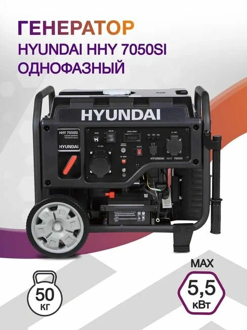 Генератор инверторный бензиновый Hyundai HHY 7050Si 5.5 кВт, электрозапуск, бензогенератор , электростанция 50кг