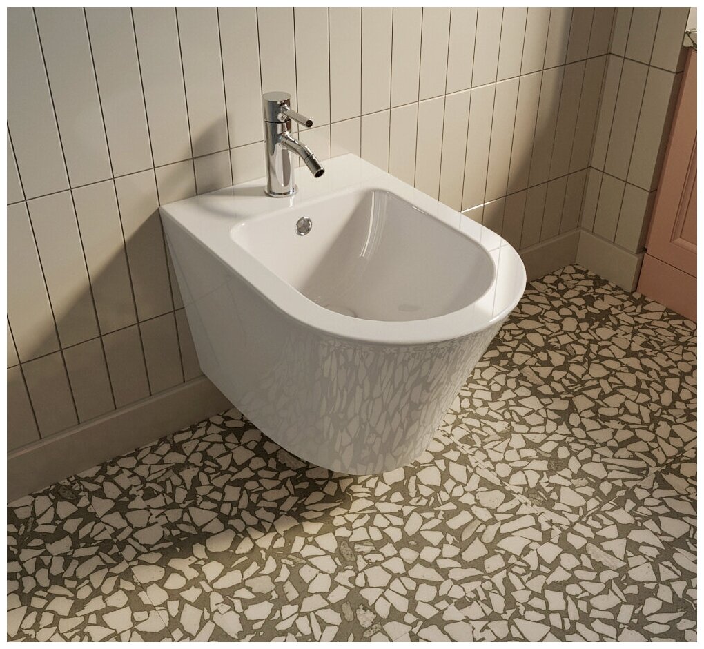 Биде подвесное Lavinia Boho Relfix Biore 77070255 в комплекте 2 в 1: чаша биде для туалета с отверстием под смеситель, инсталляция
