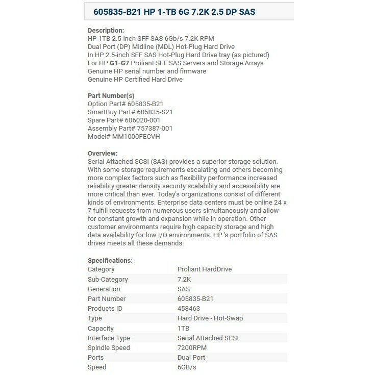 605835-B21 HP 1TB 6G 7.2K SFF SAS HotPlug Midline Drive