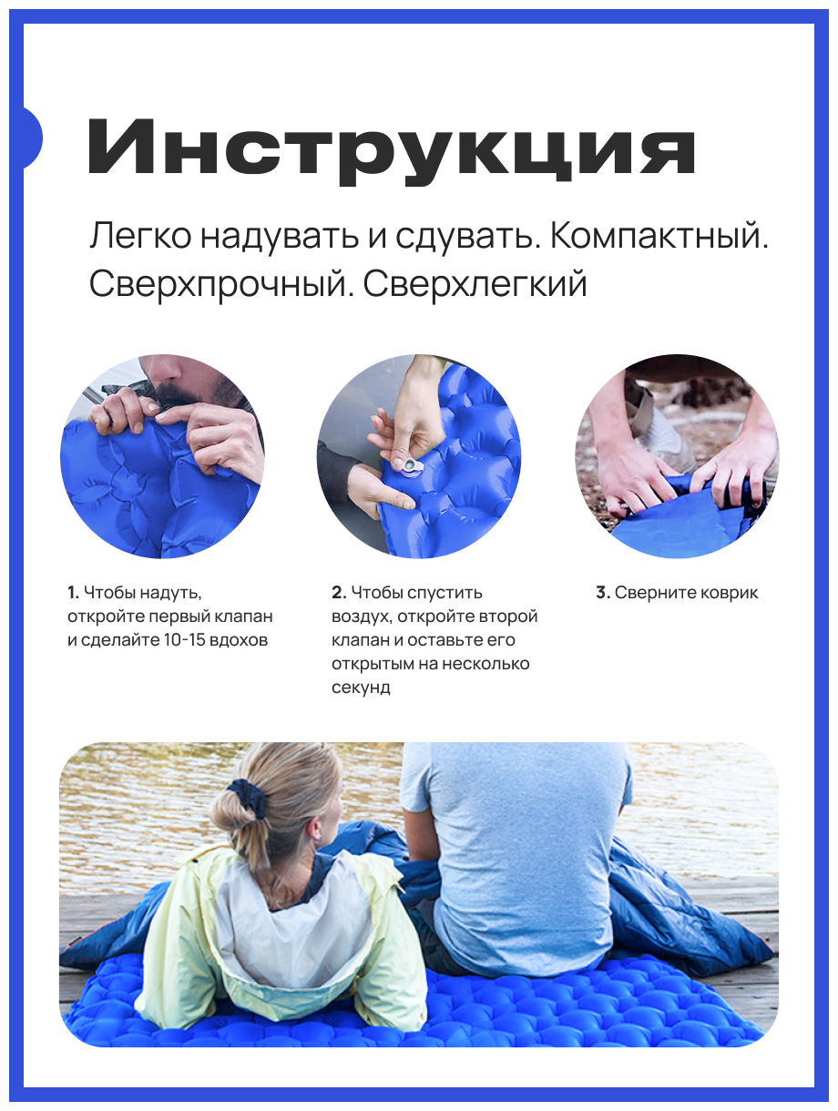 Коврик Roadlike надувной туристический Camping синий