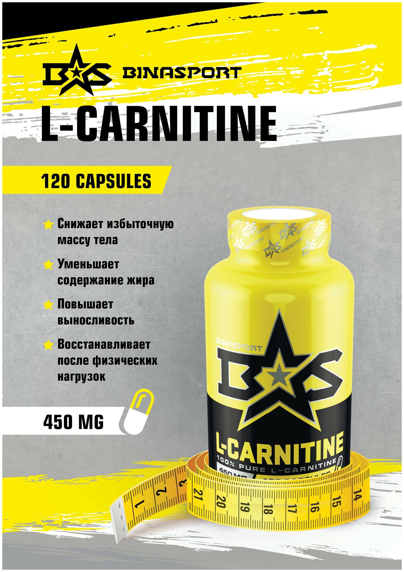 Nosorog Жиросжигатель Л-Карнитин в капсулах Binasport "L-Carnitine" №120 по 450 мг сжигатель жира в Курчатов
