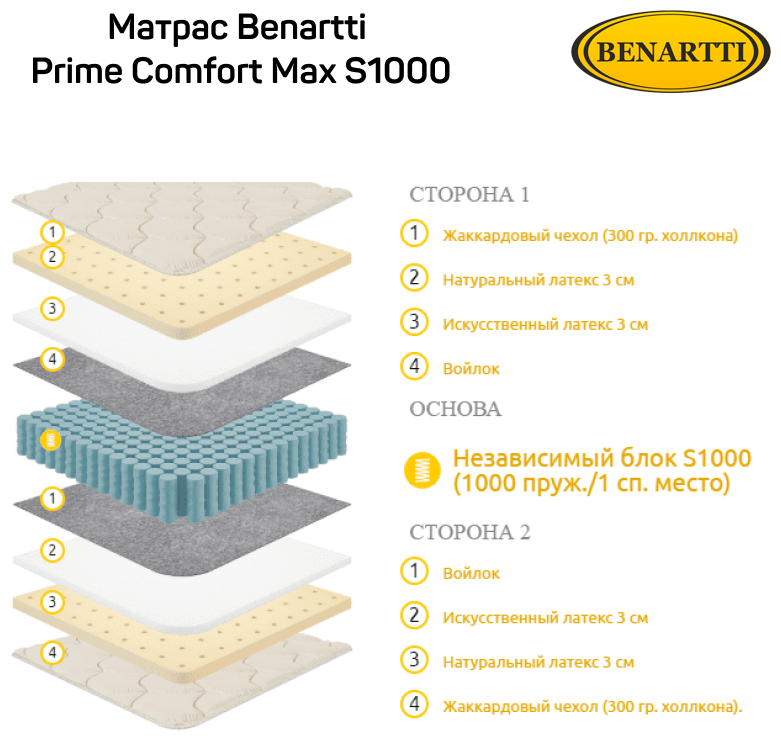 Latona Prime Матрас Benartti Prime Comfort Max S1000 160x195 матрасы в Курчатов