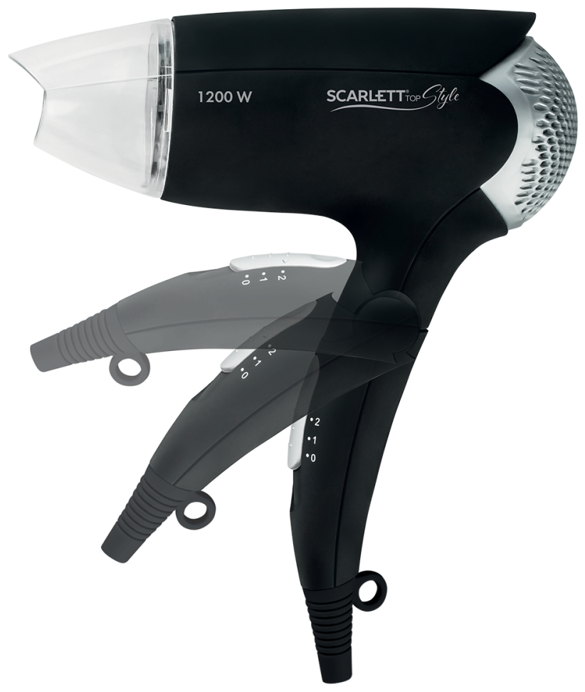 Фен SCARLETT SC-HD70IT02, 1300Вт, складная ручка, концентратор (черный)