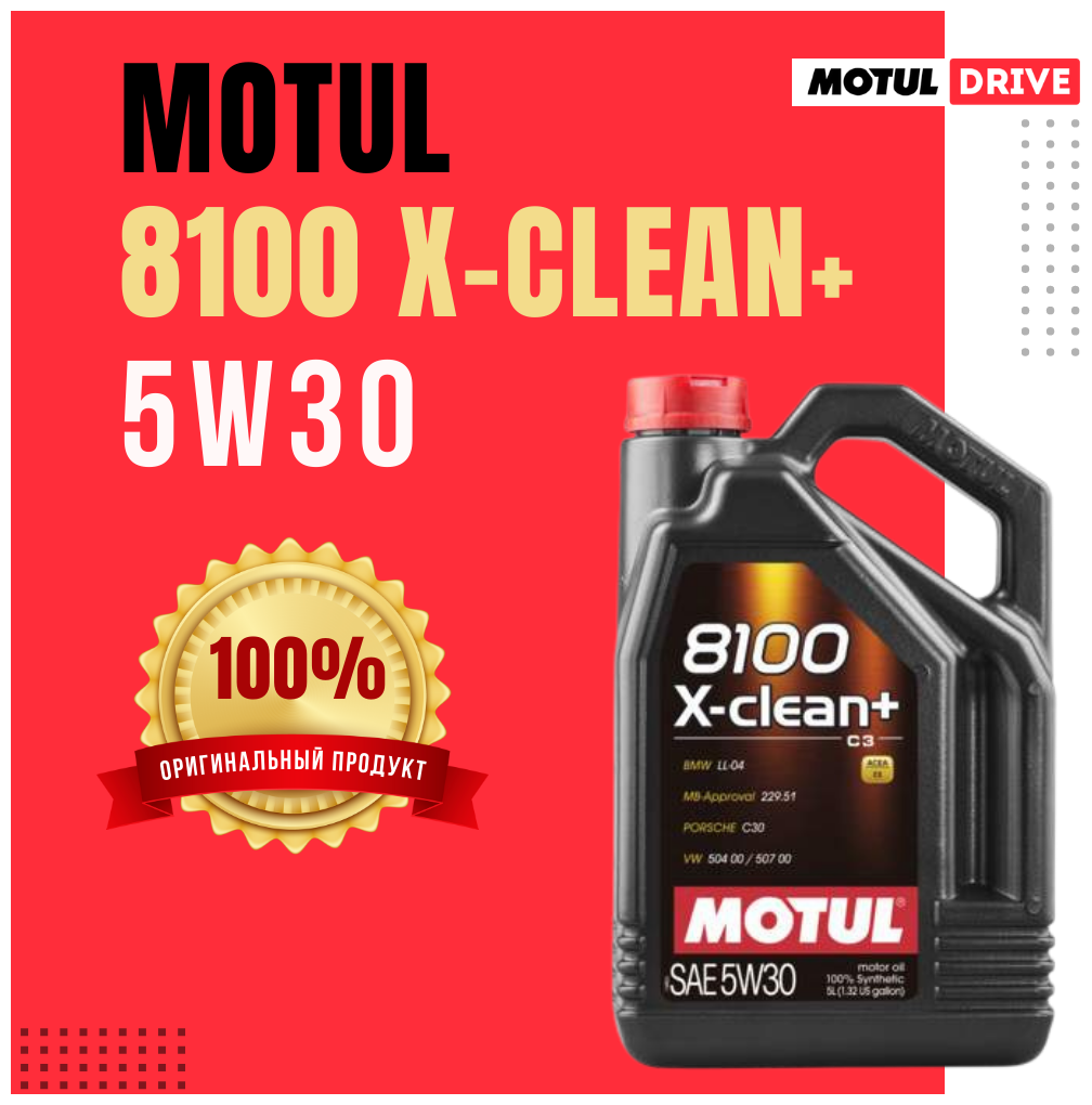 MOTUL Motul 5w30 8100 X-Clean + (5l)_масло Мотор.! Синтacea C3, Vw 507.00/504.00, Porsche C30, Mb 229.51