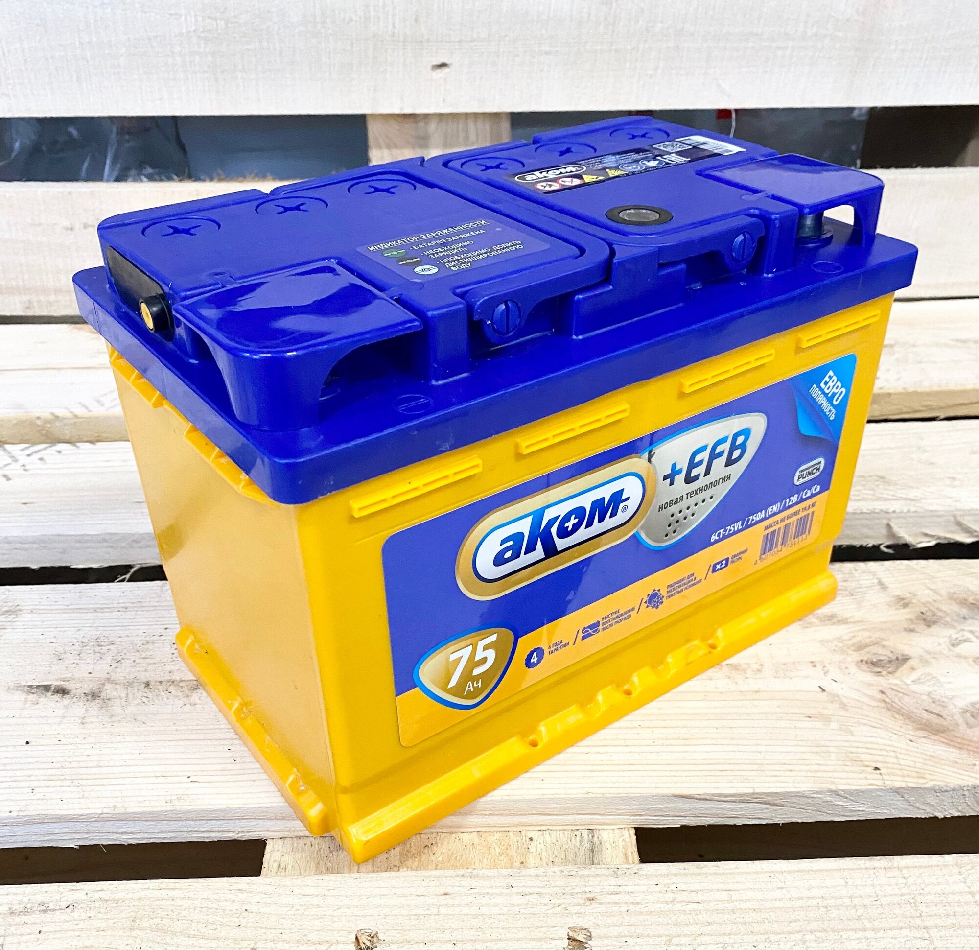 Автомобильный аккумулятор АКОМ EFB 75 Ач, обратная полярность