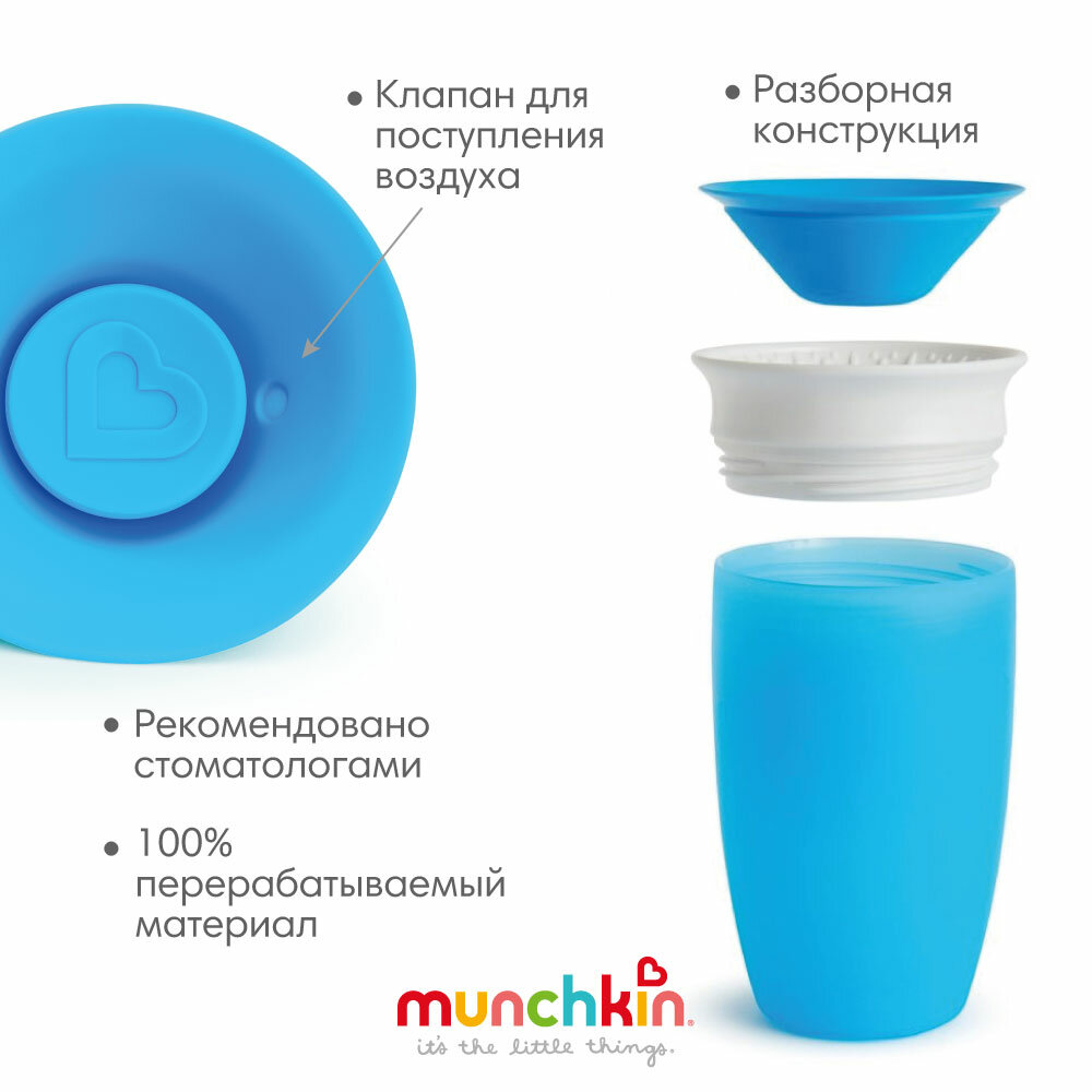 Munchkin поильник с крышкой MIRACLE® 360° непроливайка Голубой 296 мл. 12+