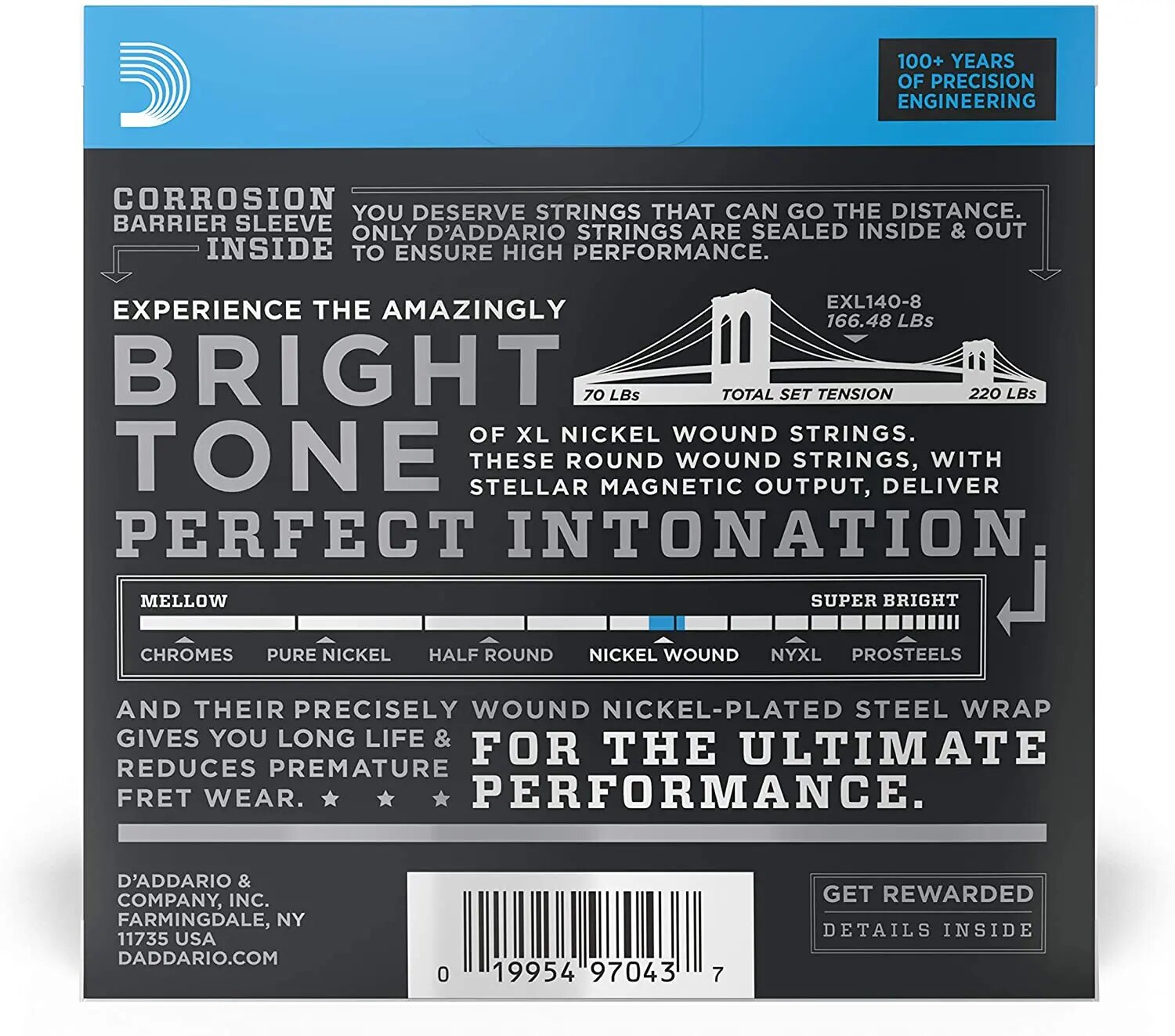 Струны для 8-струнной электрогитары DADDARIO EXL140-8