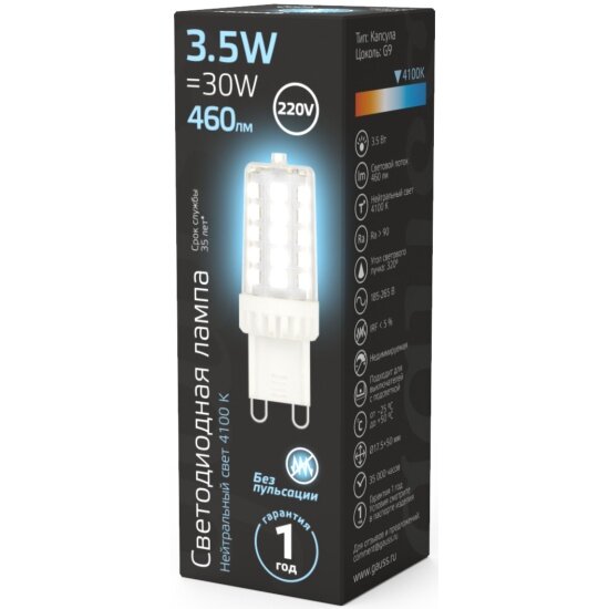 Brille Светодиодная лампа Gauss G9 AC185-265V 3,5W 460lm 4100K керамика LED 1/10/200 лампочки в Курчатов