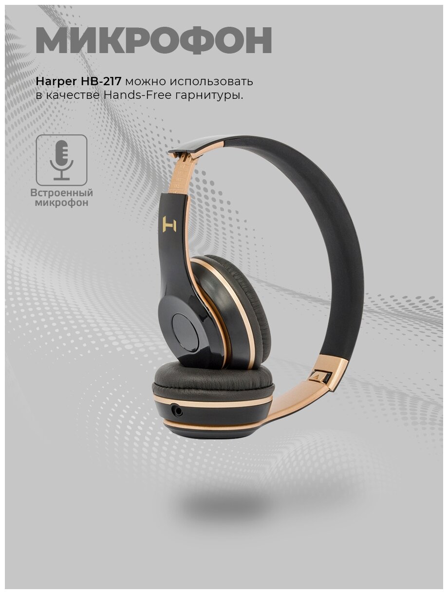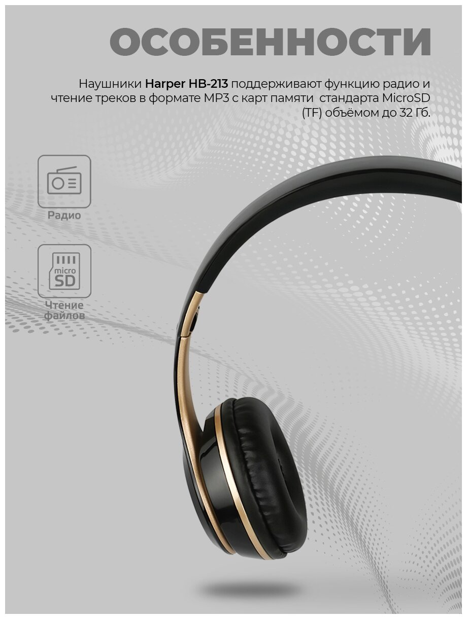 Наушники HARPER HB-213 беспроводные, накладные, черный/золотой