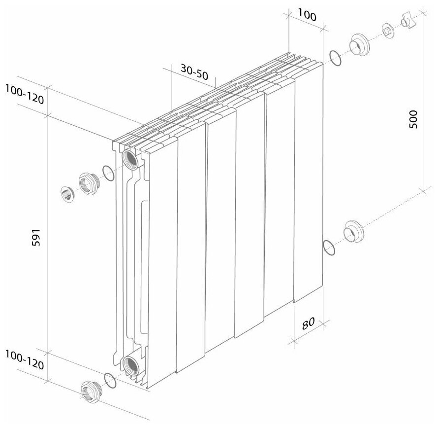Радиатор биметаллический Royal Thermo PianoForte 500 Silver Satin 6 секции подключение боковое универсальное