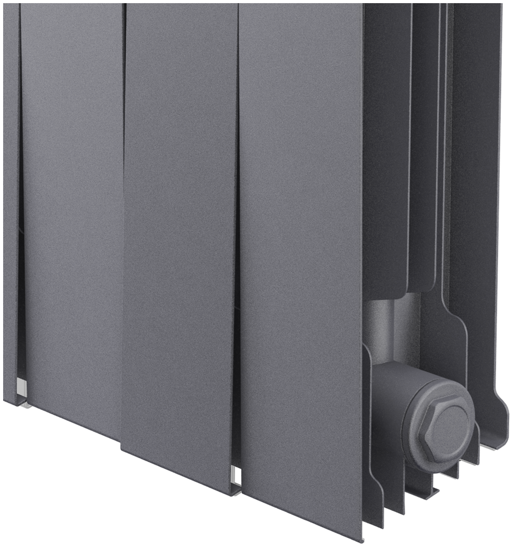 Радиатор биметаллический Royal Thermo Piano Forte 500 мм 8 секций 1" боковое подключение 591х640 мм серый