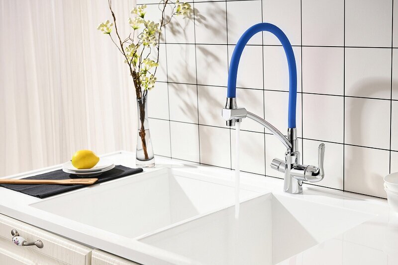 Смеситель для кухни Lemark Comfort LM3070C-Blue с гибким изливом, хром, синий
