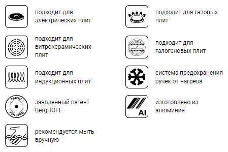 - совместимость с индукцией / мытье в посудомойке / отверстие для пара / многослойное дно / шкала литража