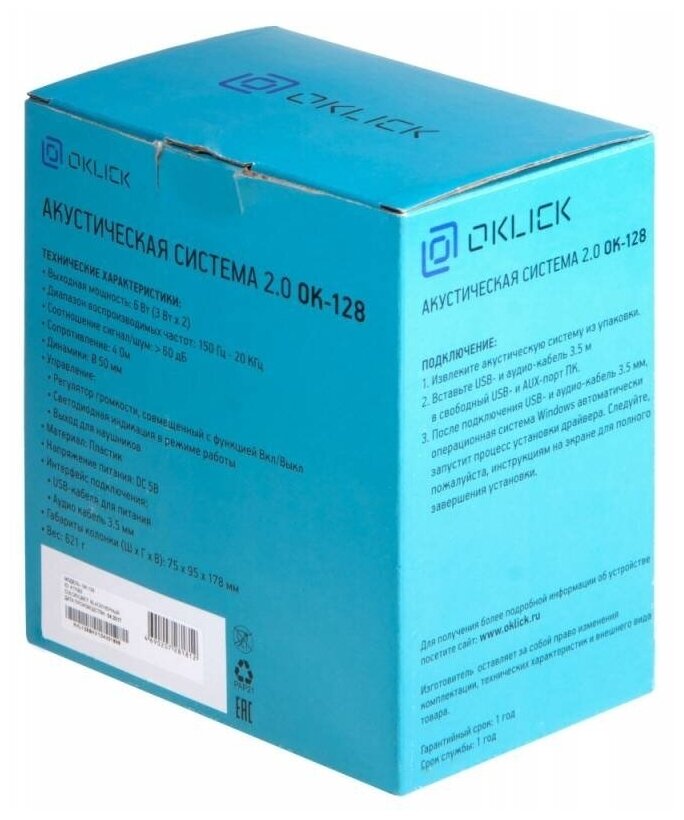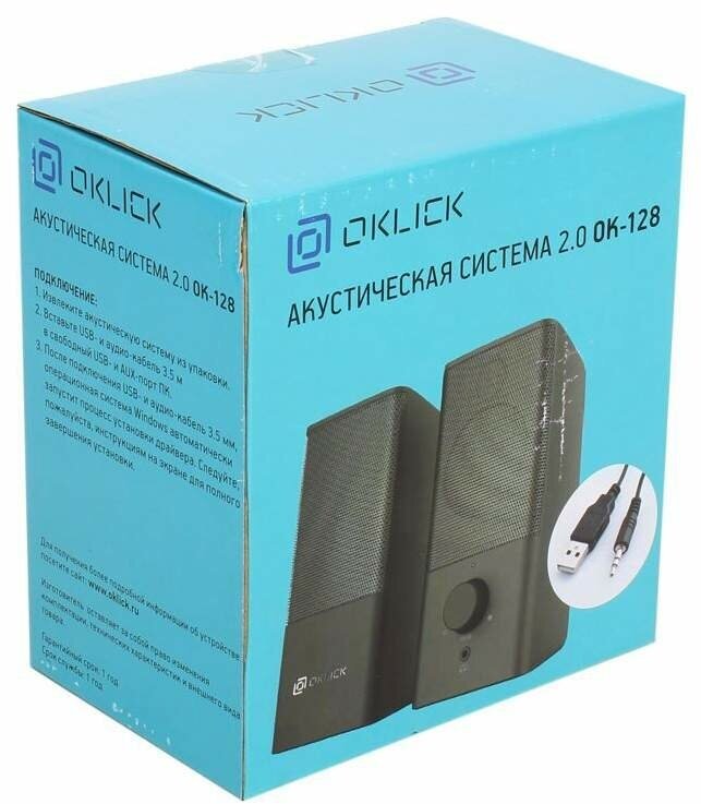 Акустическая система 2.0 Oklick OK-128 2.0 черный 6Вт, 1450161