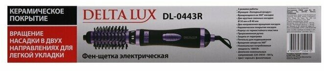 Фены-щётки Delta Фен-щетка DELTA LUX DL-0443R, 1000 Вт, 2 режима, 2 насадки, черно-фиолетовая