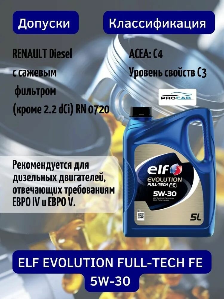 ELF 194908 ELF 5W30 EVOLUTION FULL-TECH FE (5L)_масло моторное!\ACEA C4, уровень свойств С3, Renault RN 0720 1шт