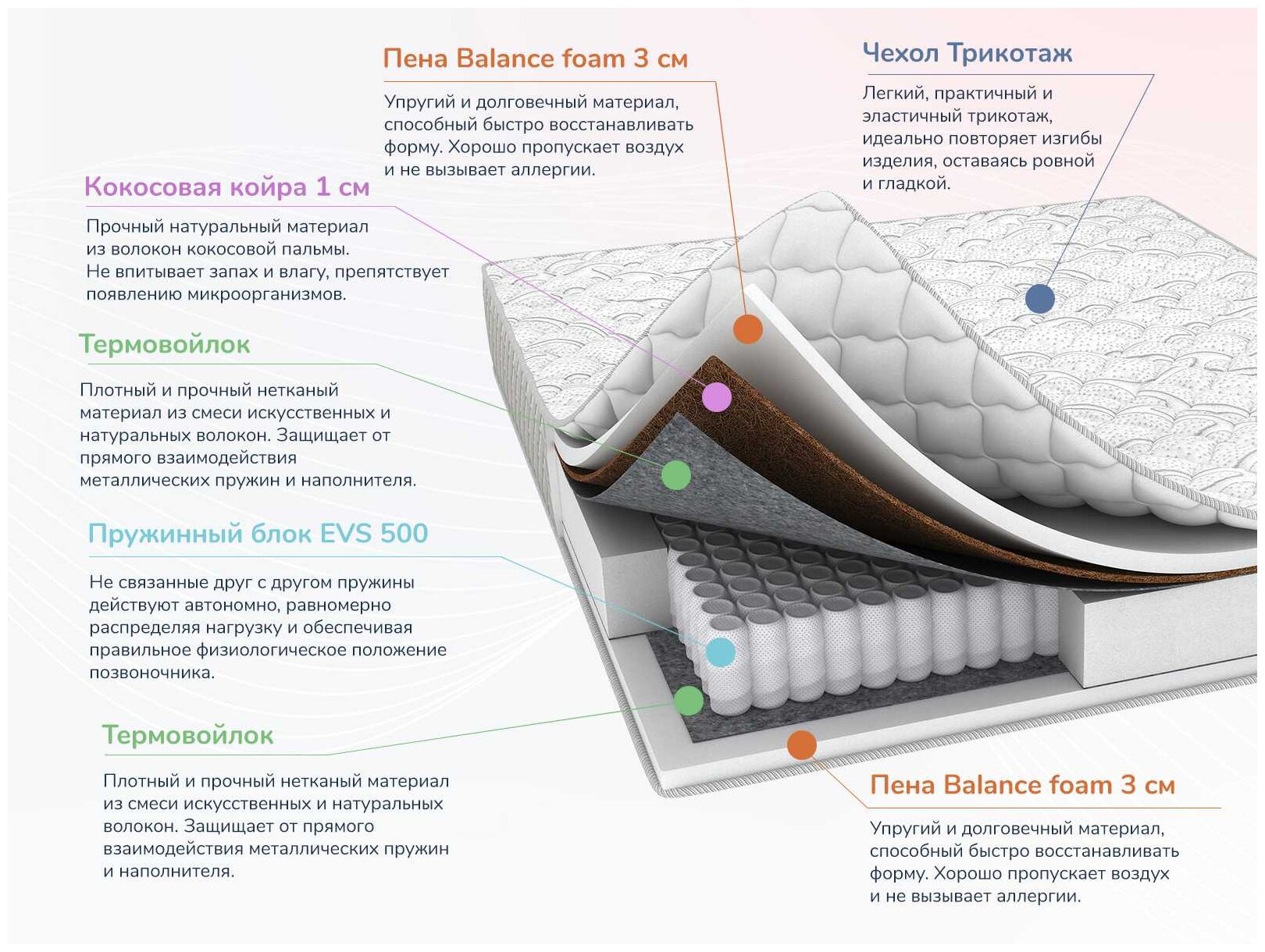 Цена для г. Курчатов. Ортопедический матрас ОК Лайт Базис оснащён независимым пружинным блоком, комбинированными наполнителями и обладает общей высотой 22 см. Модель рассчитана на нагрузку до 120 кг на спальное место, что считается существенным весом и показывает качество пружинного блока, положенного в основание. Пружинный блок: EVS500 – это тот самый высококачественный блок, который имеет в своём распоряжении 256 пружин на квадратный метр. Магазины в городе Курчатов смотрите ниже