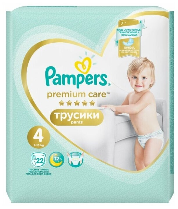 Подгузники-трусики Pampers Premium Care для малышей 9-15 кг, 4 размер, 22 шт .
