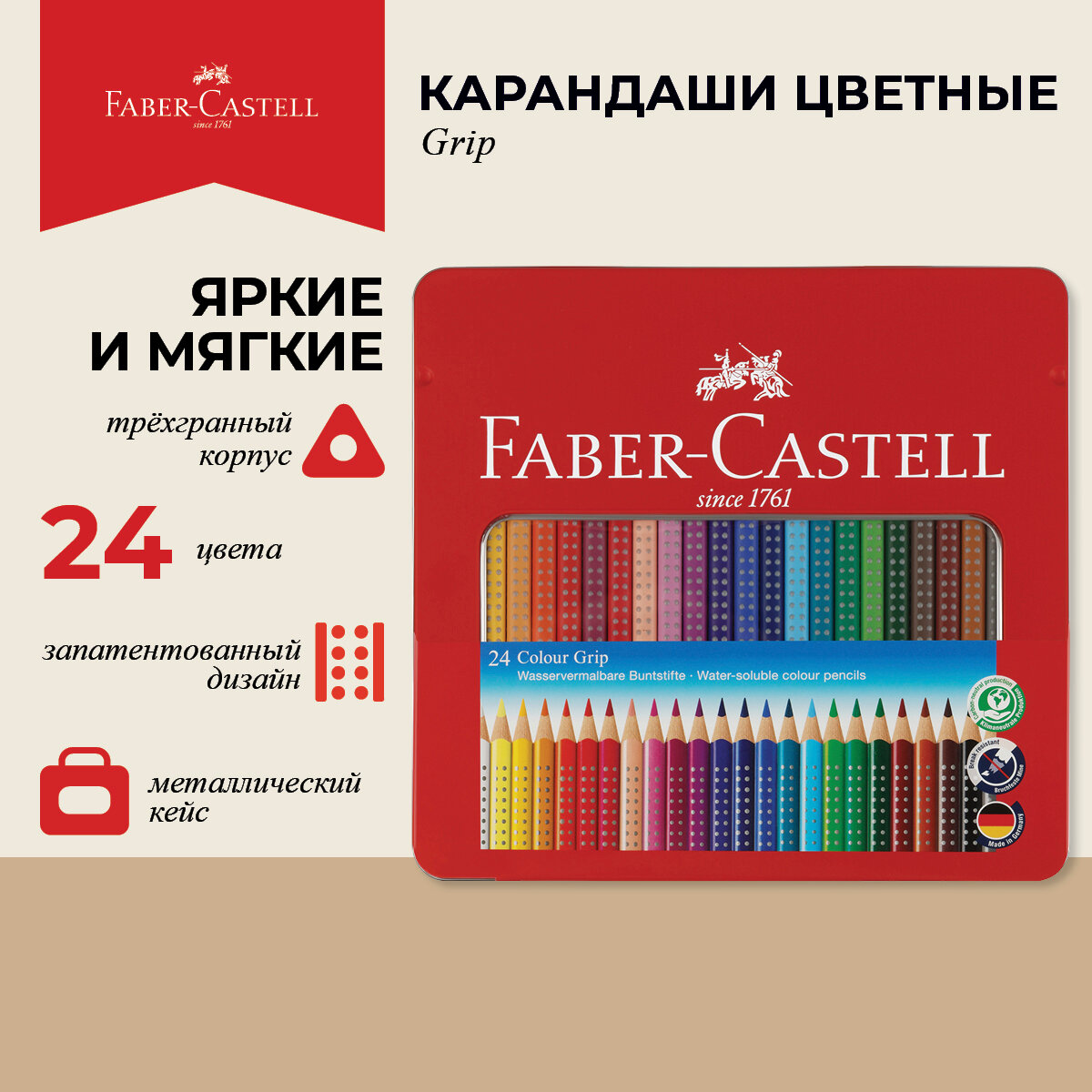 Карандаши цветные Faber-Castell «Grip», 24цв., трехгран., заточен., метал. упак.