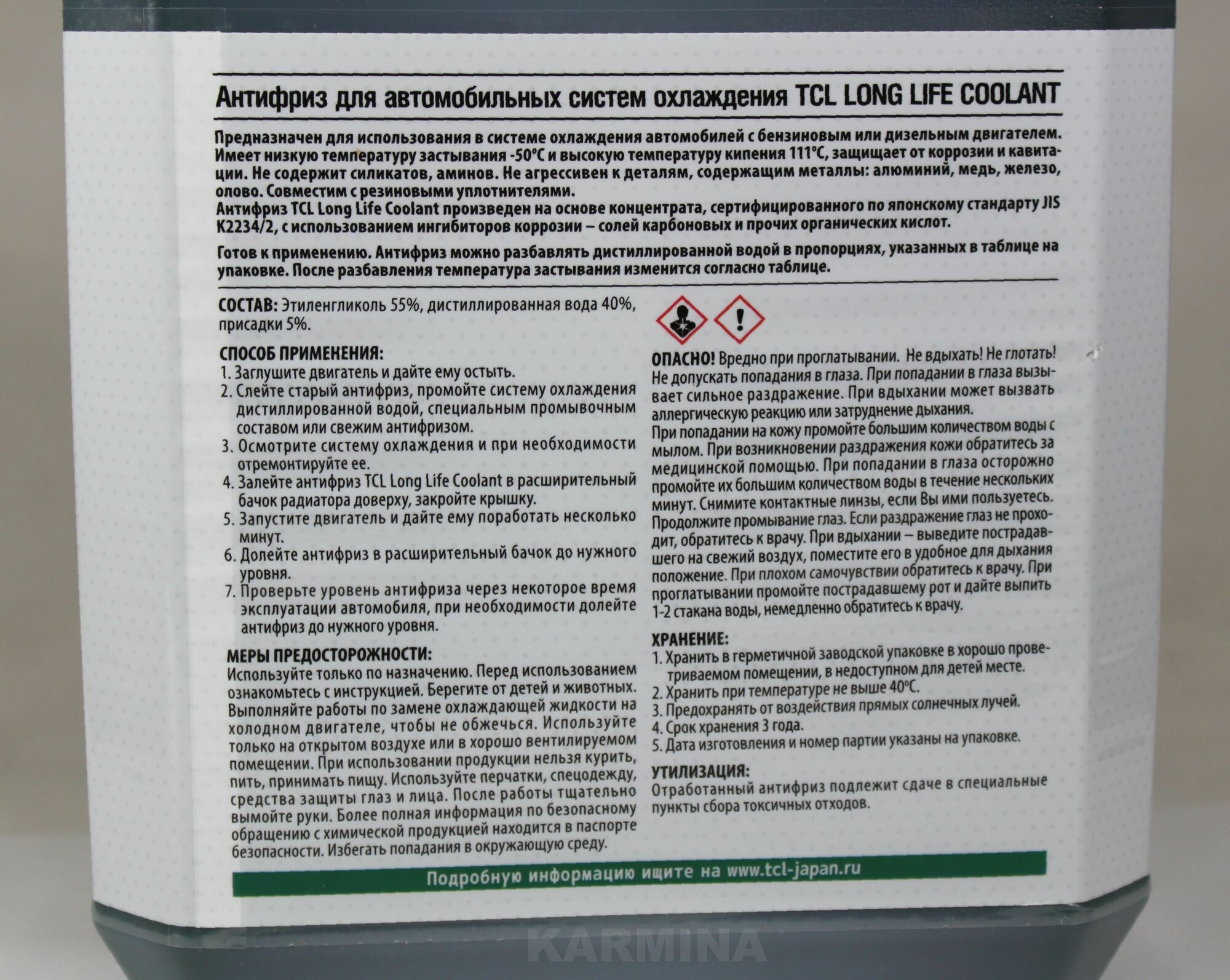 Антифриз TCL Long Life Coolant LLC, зеленый, -50°C, 4л, арт. LLC01229