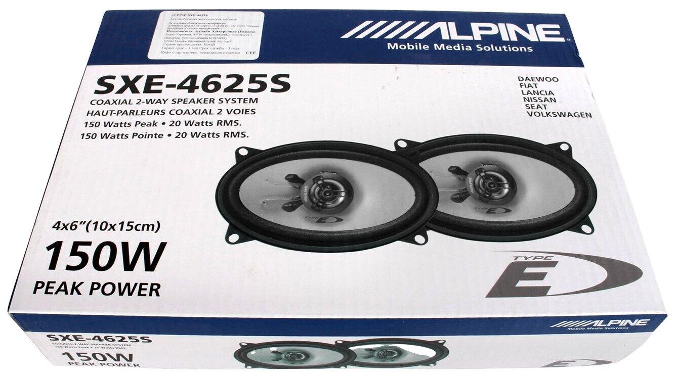 Коаксиальная акустика Alpine SXE-4625S