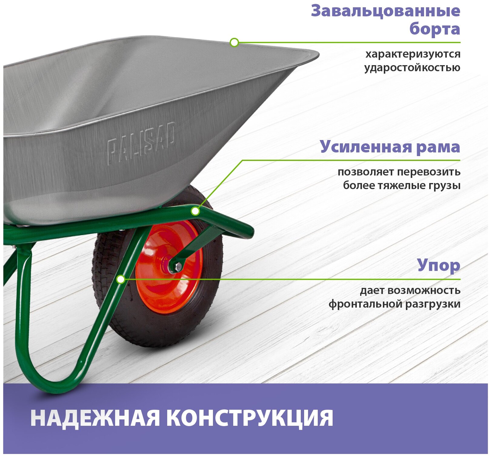Тачка садово-строительная, усиленная, грузоподъемность 200 кг, объем 90 л// Palisad