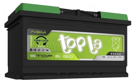 Аккумулятор TOPLA AGM STOP&GO 105 Ач обратная полярность