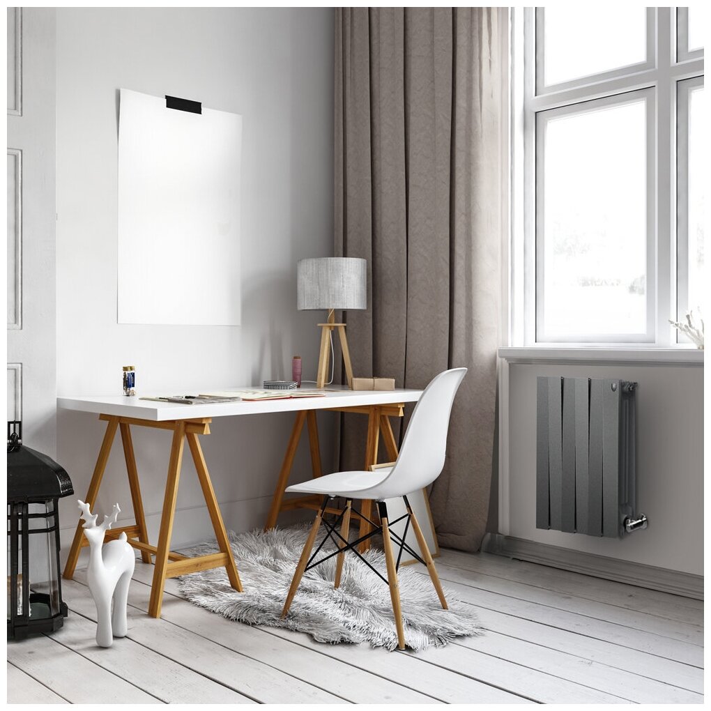 Радиатор биметаллический Royal Thermo Piano Forte 500 мм 8 секций 1" боковое подключение 591х640 мм серый