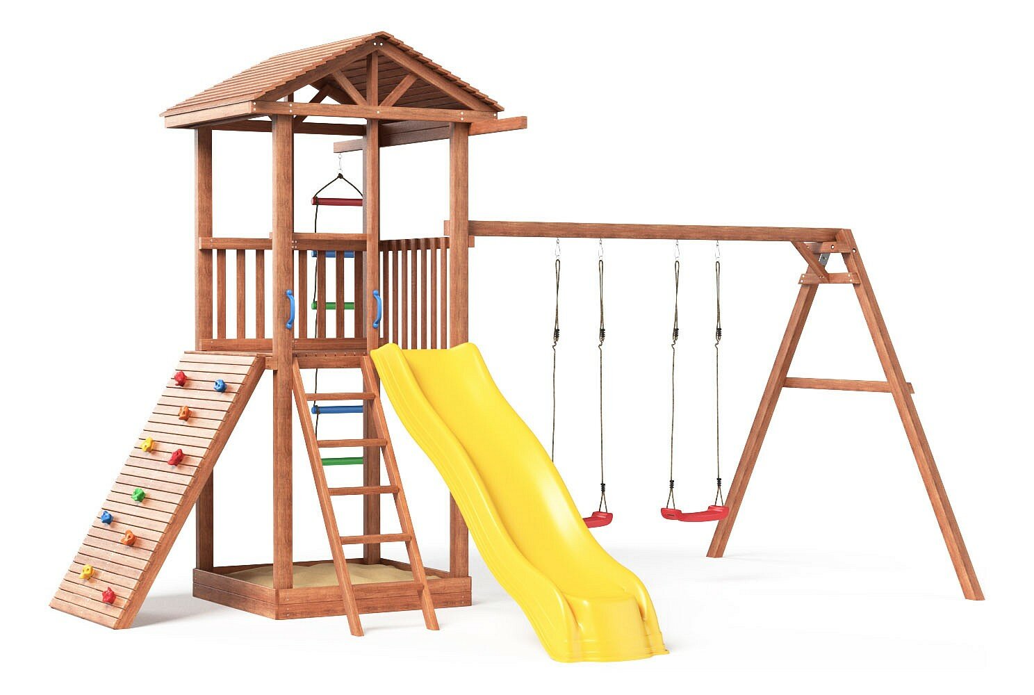 - лестница / веревочная лестница / скалодром / 2 качели / песочница