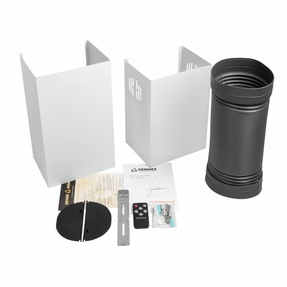 Цена для г. Курчатов. Стильная и мощная вытяжка может использоваться как в интерьере современной так и классической кухни. Лицевая часть вытяжки Germes "Murano" декорирована двумя стеклами белого цвета. Вытяжка оборудована сенсорным управлением, которое четко и корректно управляет мощным электромотором задавая один из трех режимов работы вытяжки, а так же включает/выключает освещение и активирует таймер автоотключения. Магазины в городе Курчатов смотрите ниже