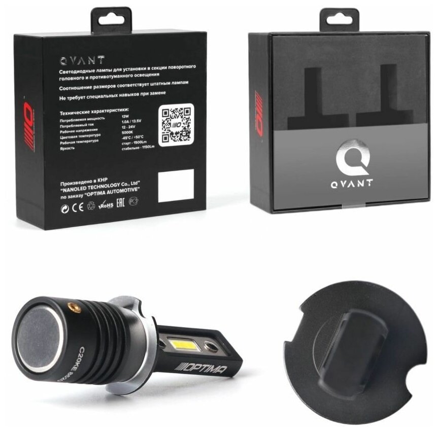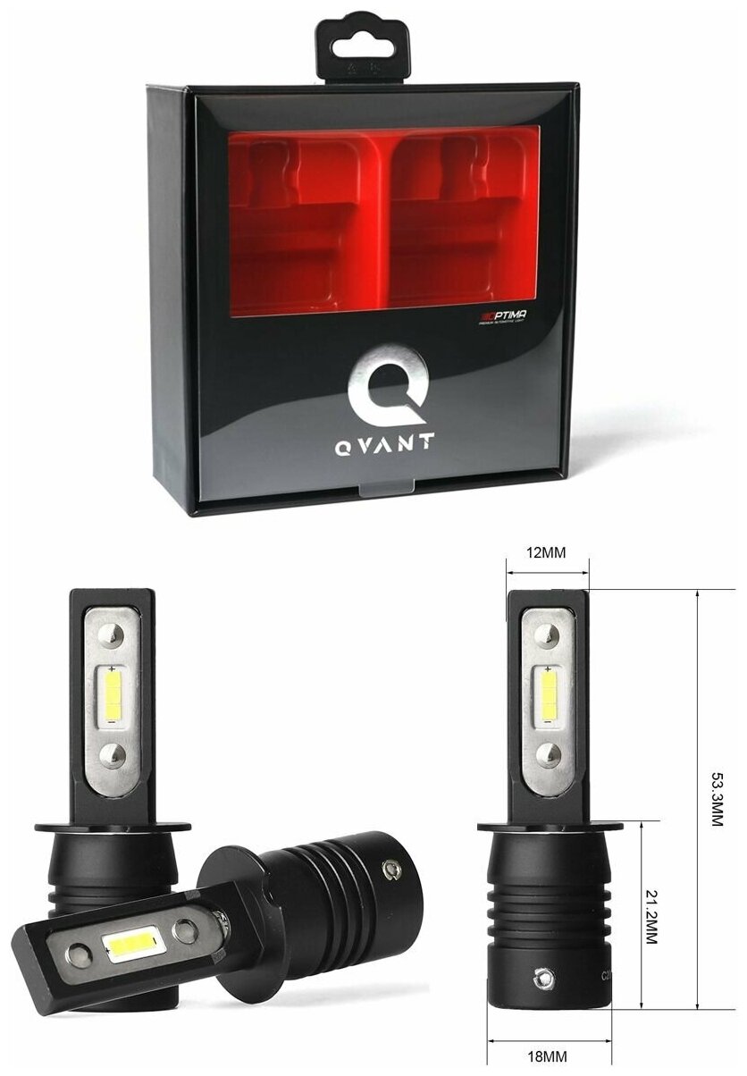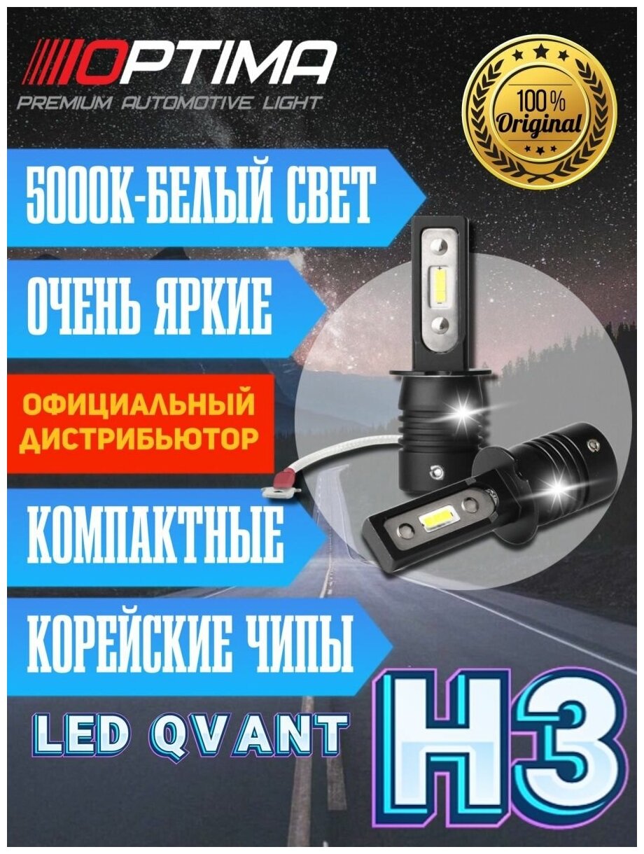H3 optima led qvant, 12-24v, 2 лампы, OPTIMA QH3 (1 шт.)