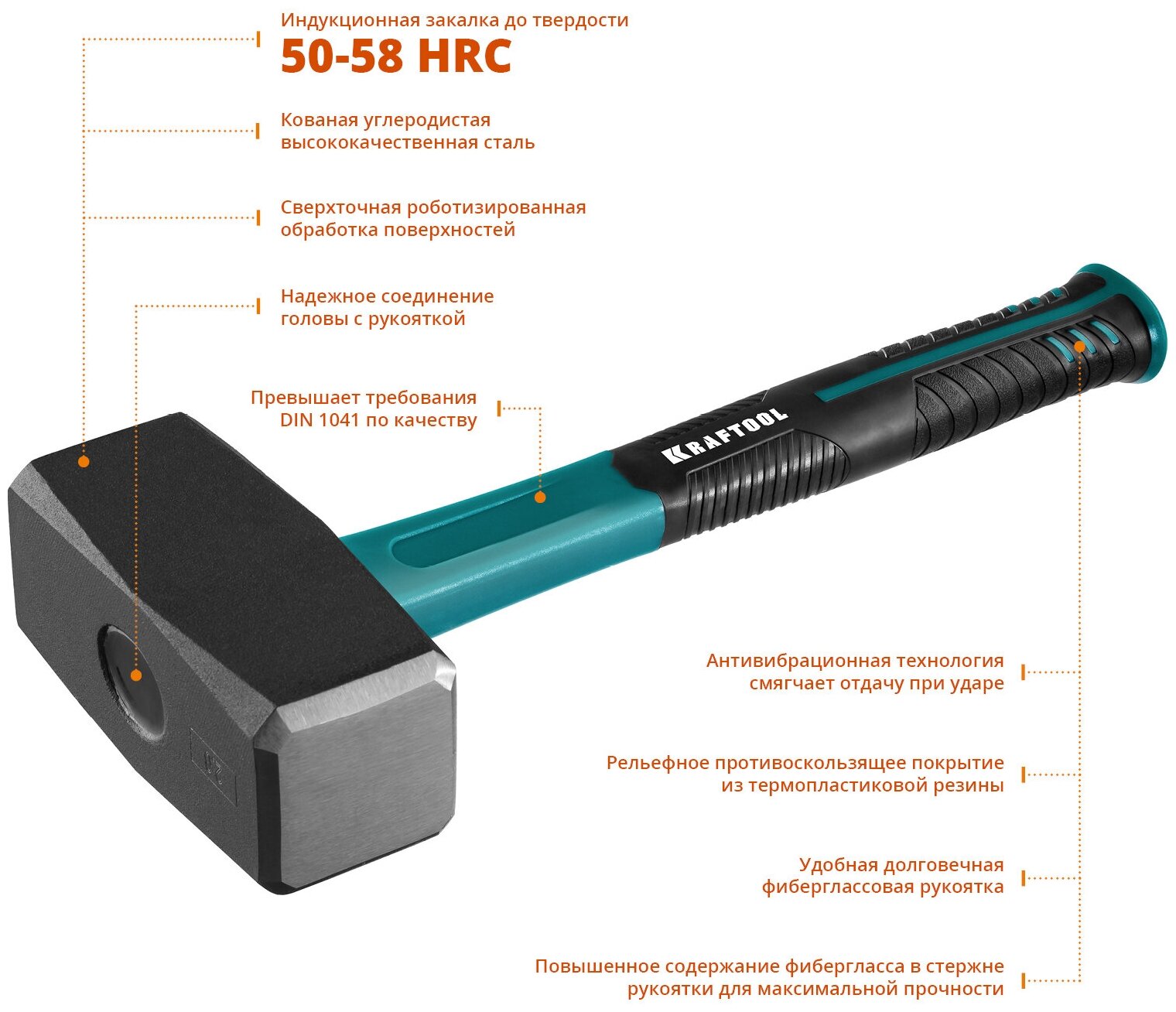 KRAFTOOL Fiberglass 1.5 кг кувалда с фиберглассовой рукояткой