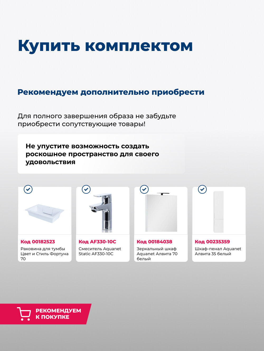 AQUANET Тумба под раковину Aquanet Алвита 70 белый тумба под умывальник в Курчатов