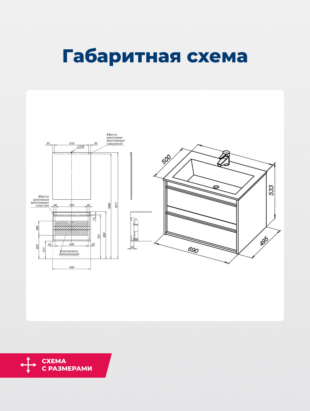 - Расположение раковины