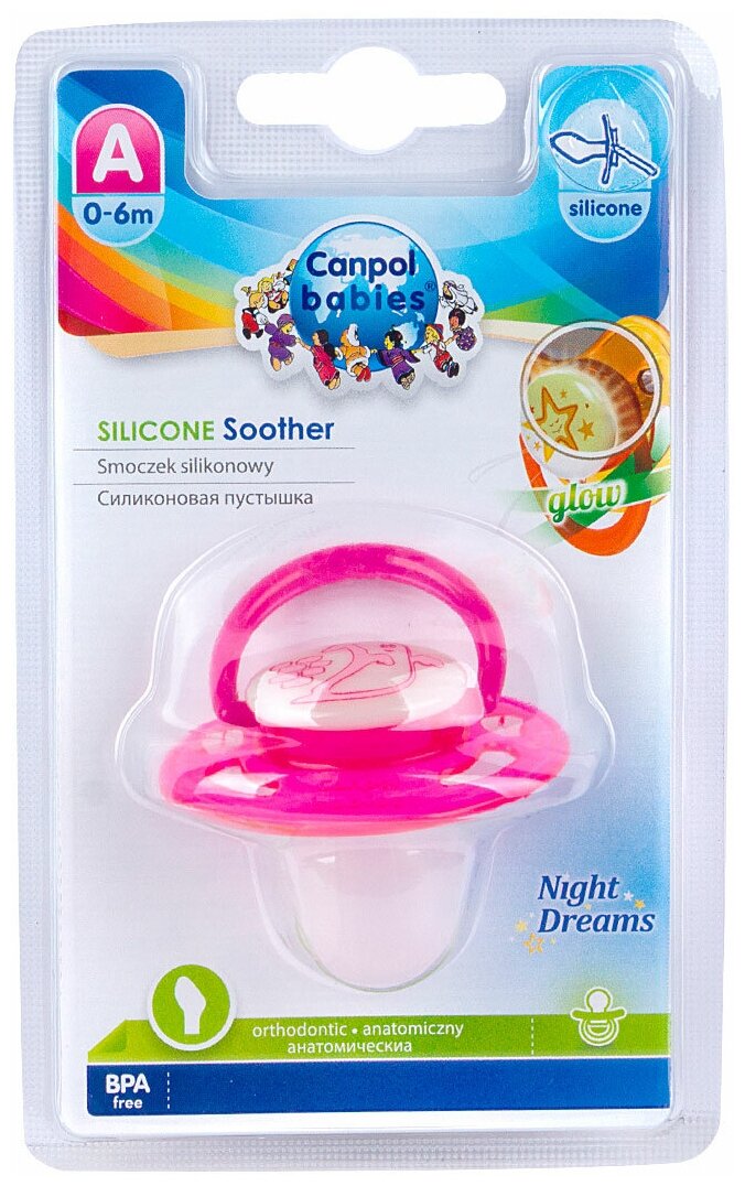 Canpol Babies Пустышка силиконовая ортодонтическая Canpol Babies Night Dreams 0-6 м, розовый (22500) соска (пустышка) в Курчатов