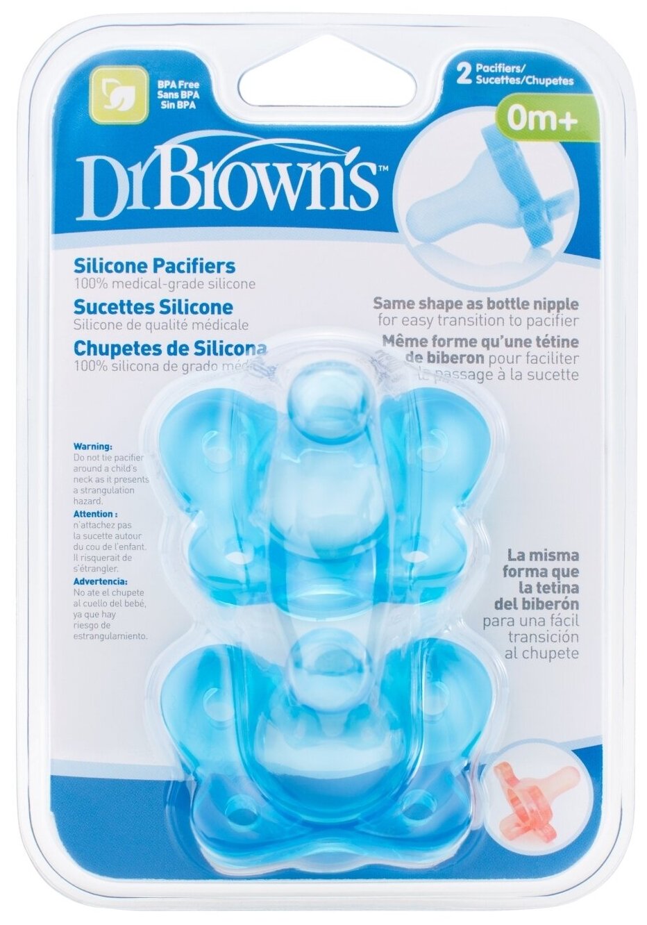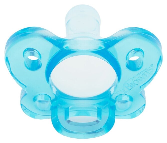 Пустышка DR. BROWN'S HappyPaci цельносиликоновая 0 - 6 месяцев, синяя, 2 шт