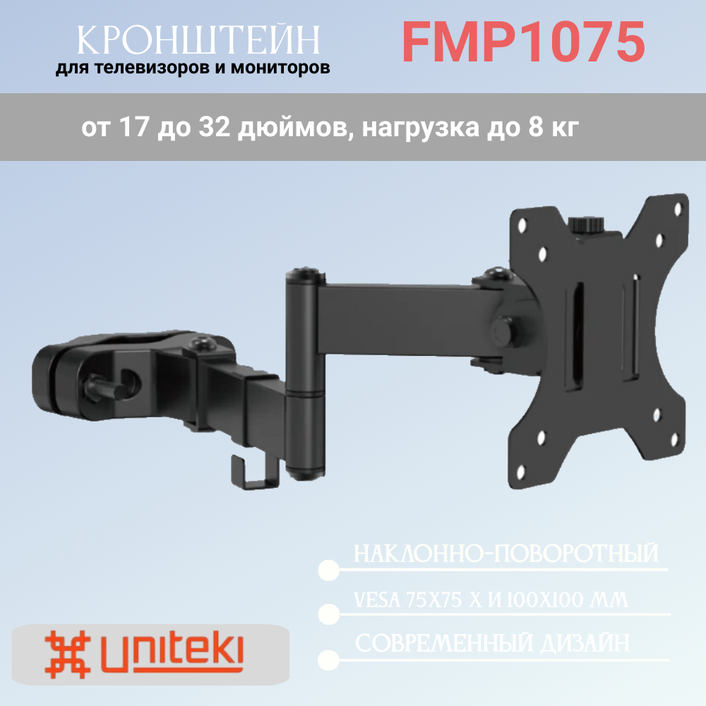 Кронштейн для монитора или телевизора с креплением на трубу наклонно-поворотный с диагональю от 17" до 32" UniTeki FMP1075, черный